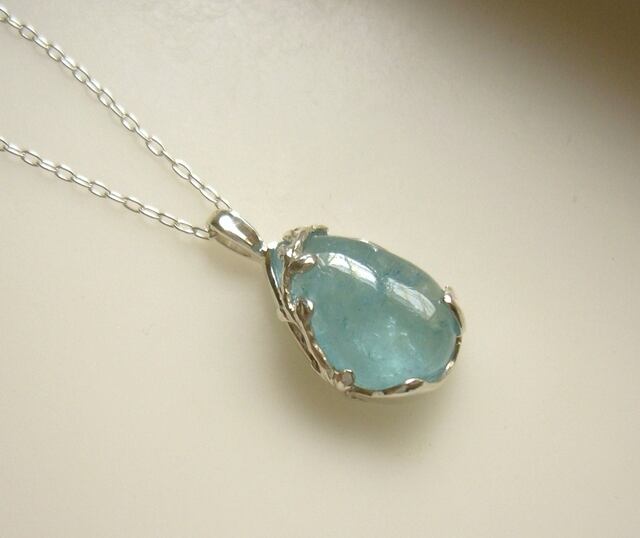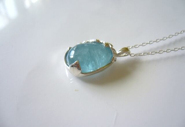 ☆アクアマリンで、「ラブラドライトとリーフのペンダント」のデザインで製作致します。