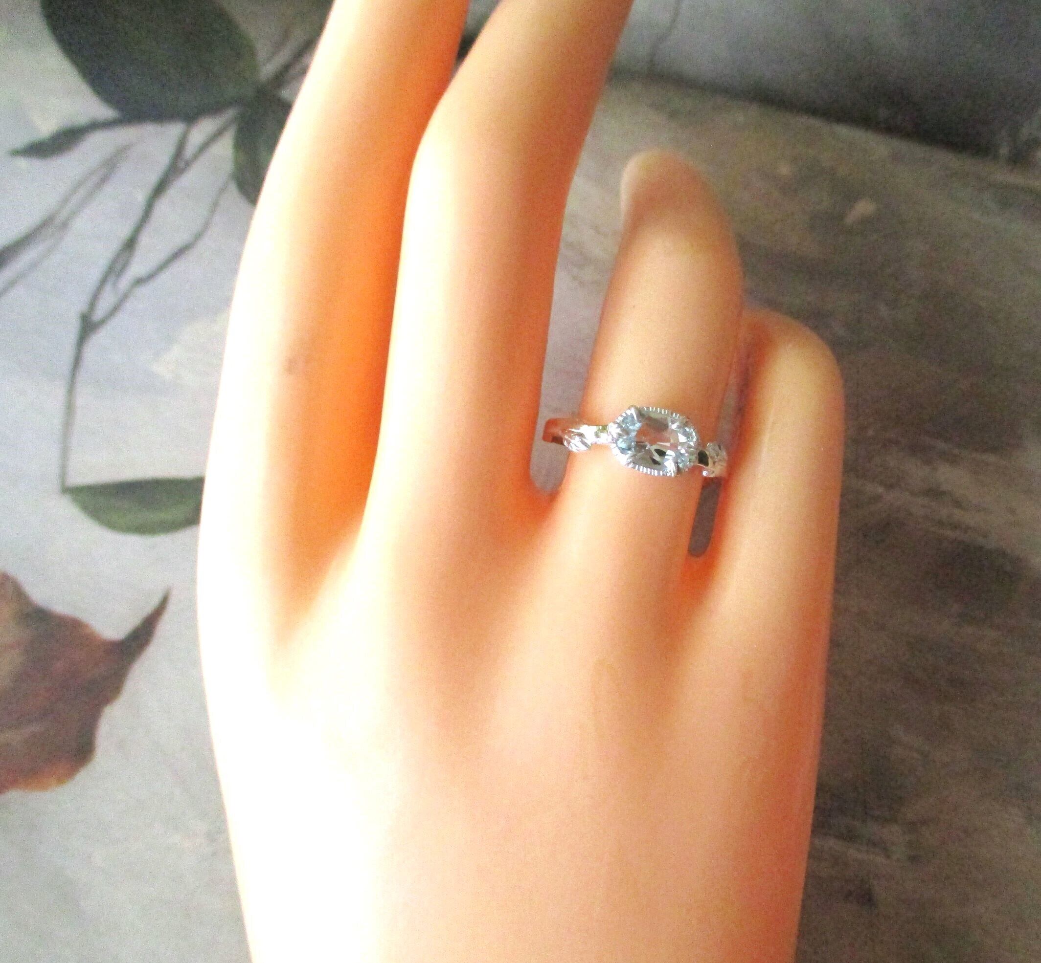 シルバーのリングフレームは植物のオーガニック感プラス、アンティーク風に仕上げました。