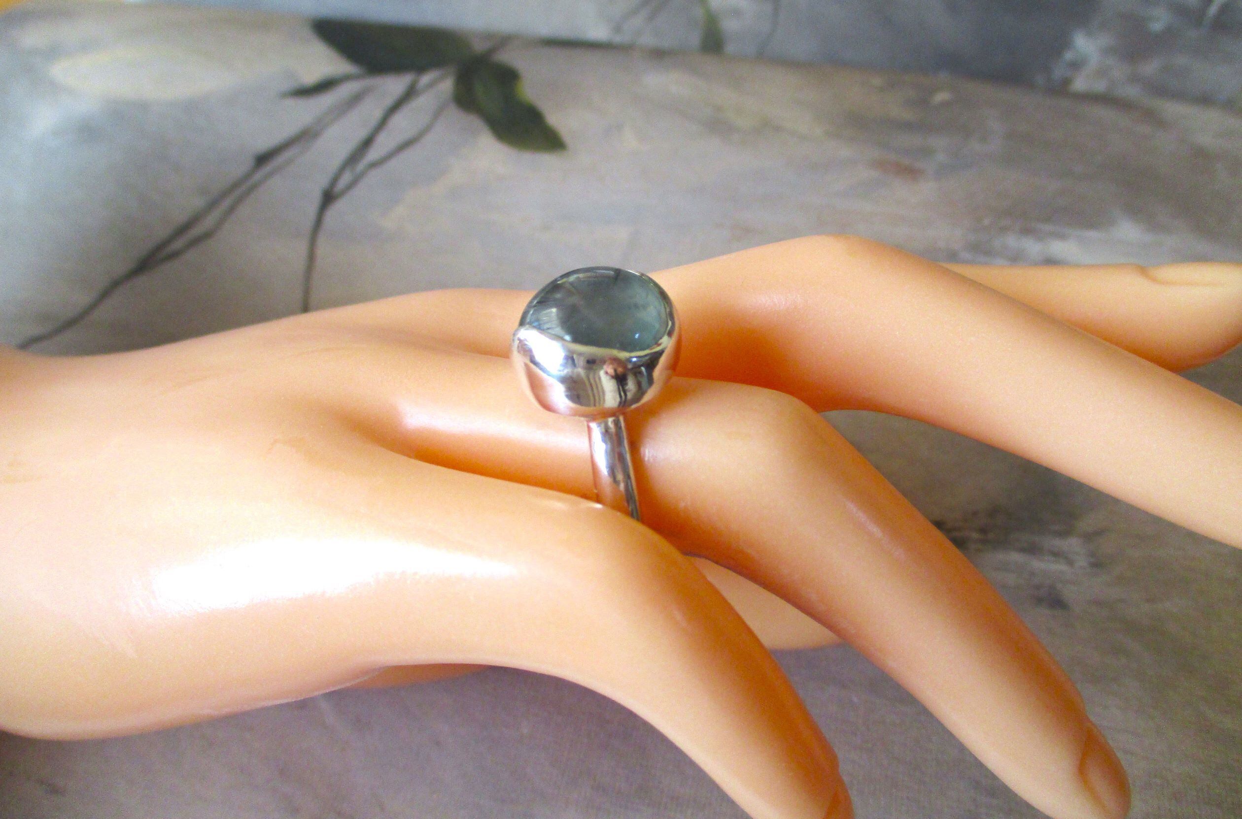 シルバーのリングフレームは柔らかな曲線のベゼルで包み込むように石を留めました。