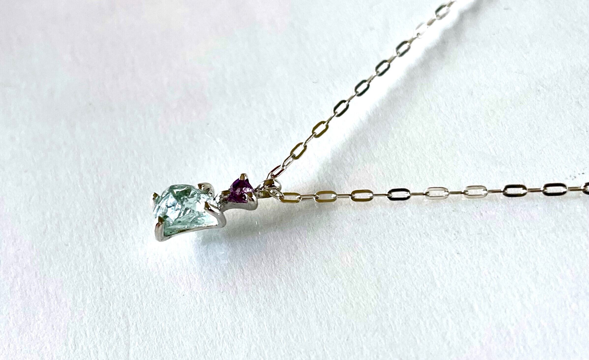 アクアマリンの原石とアメジストを使ったSILVER925のペンダントです。