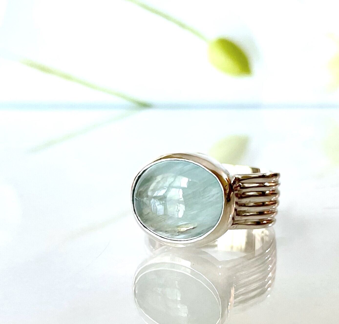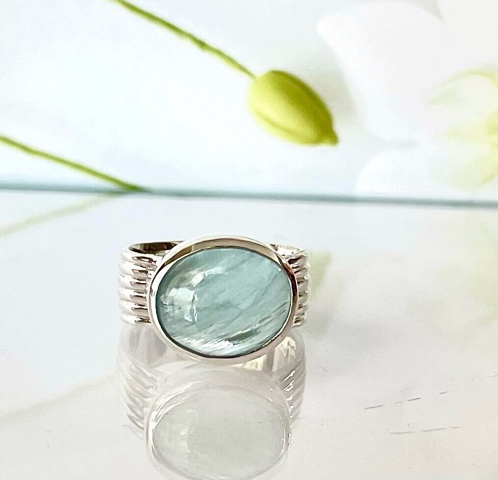 すっきりとしてモダンかつナチュラルなアクアマリンの指輪です。