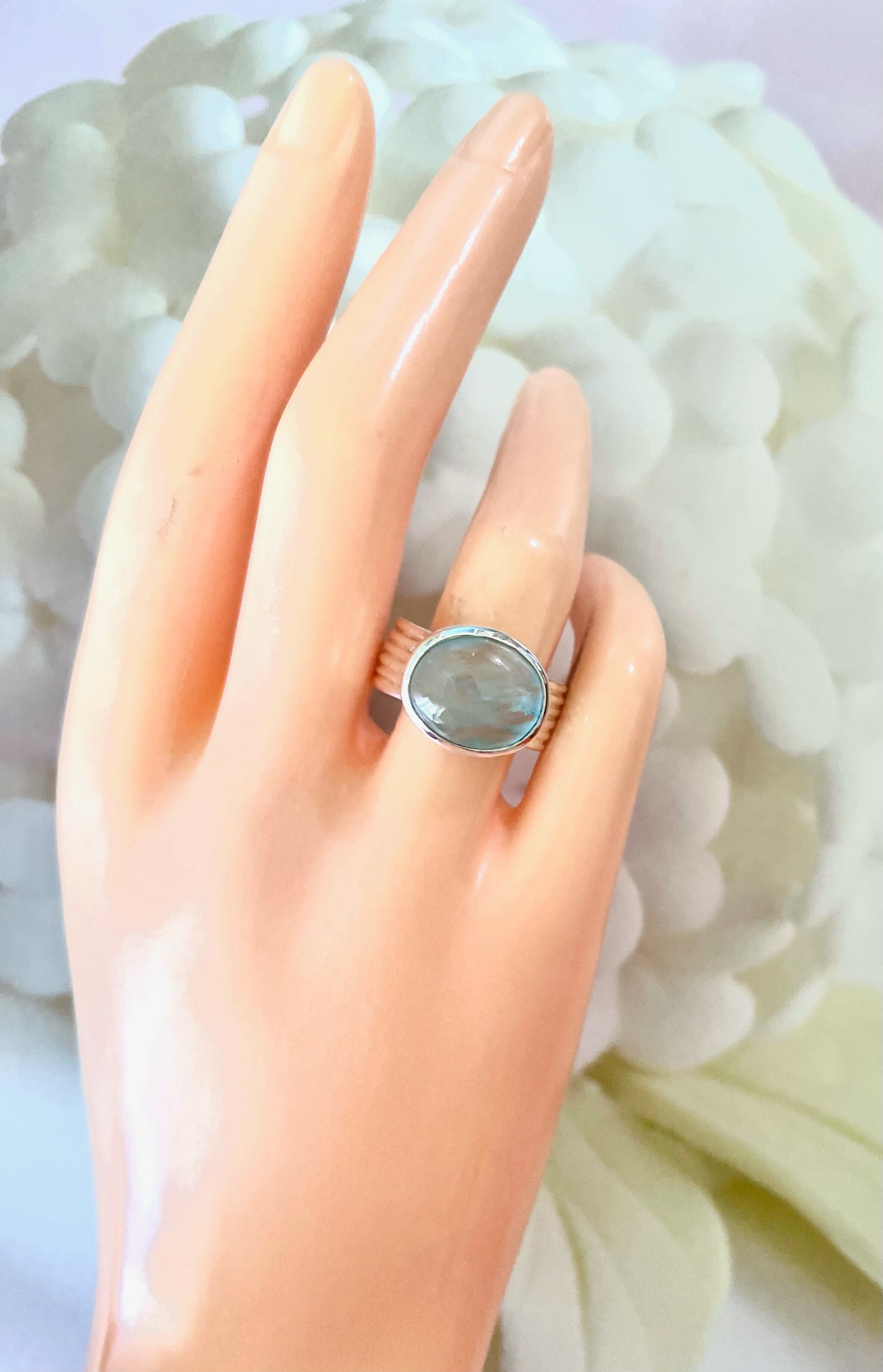さざ波のようなインクルージョンが魅力のこのアクアマリンは、乳白と透明が入り交ざりパステルカラーの明るい水色がとても美しいです。