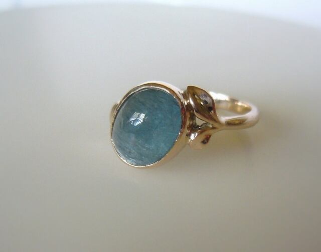 天然ブルートルマリンのK10ボタニカルリング