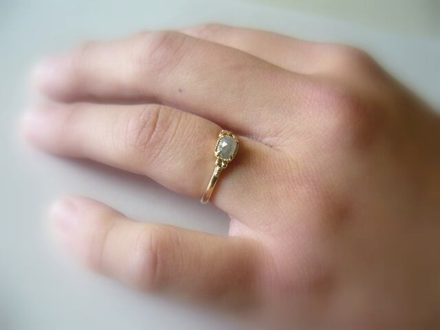 ナチュラルダイアモンドを使ったK14の指輪です。