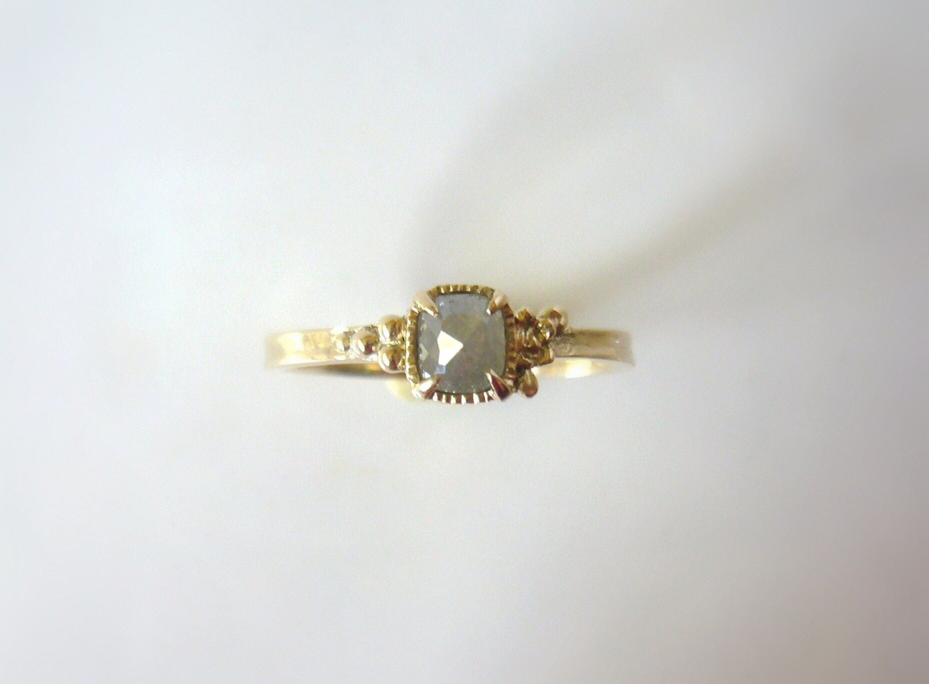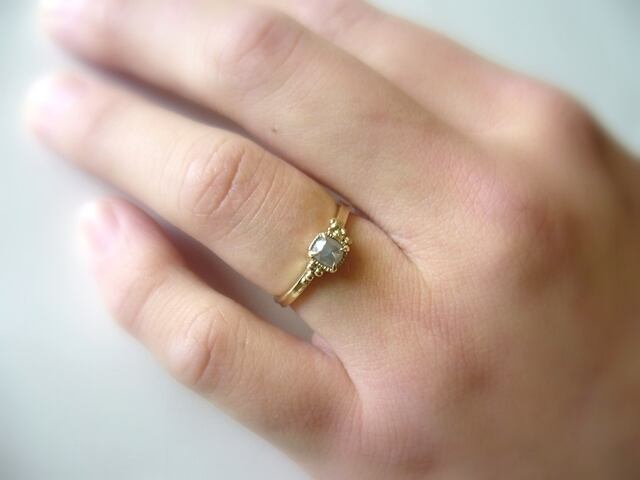 ナチュラルダイヤとK14のボタニカルリング(グレー)