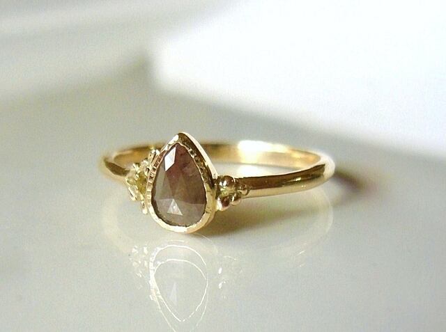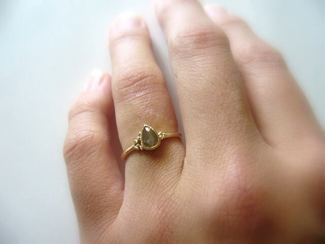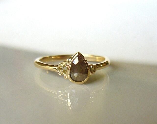 ナチュラルダイアモンドのK14指輪(グレイッシュブラウン)