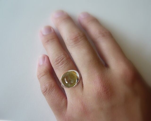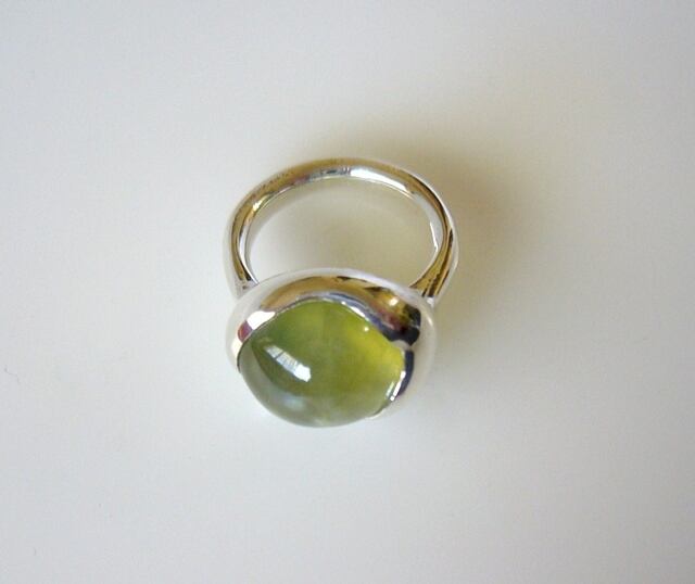 マリ産天然プレナイトを使ったシルバーの指輪です。
