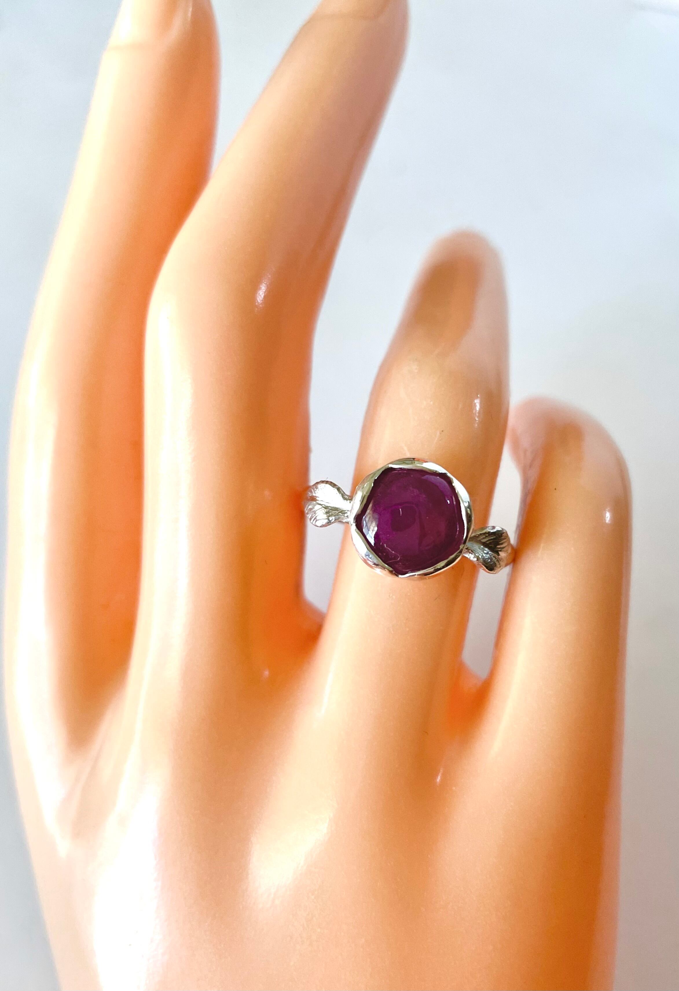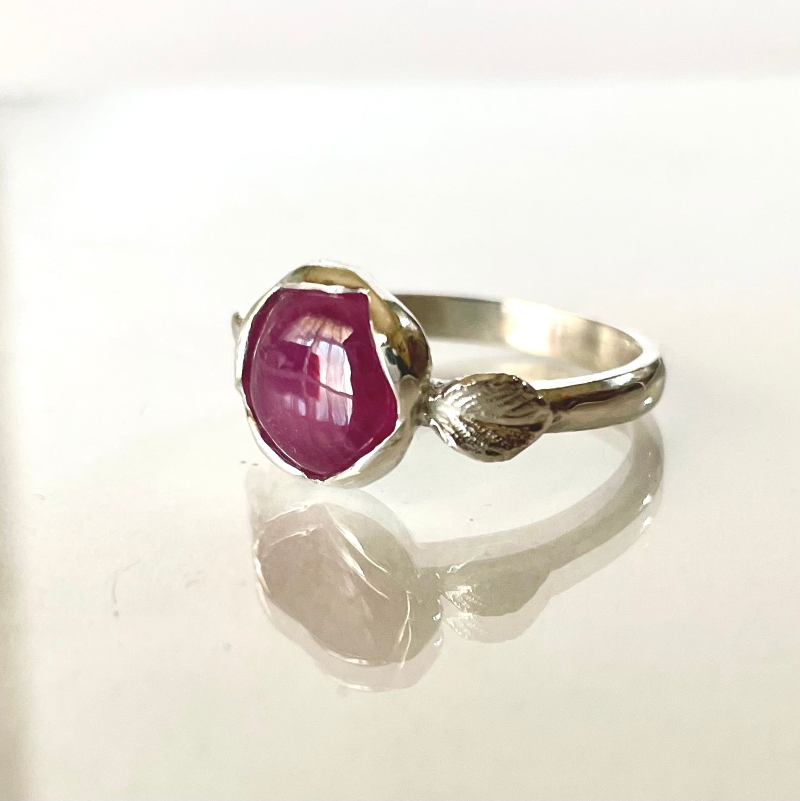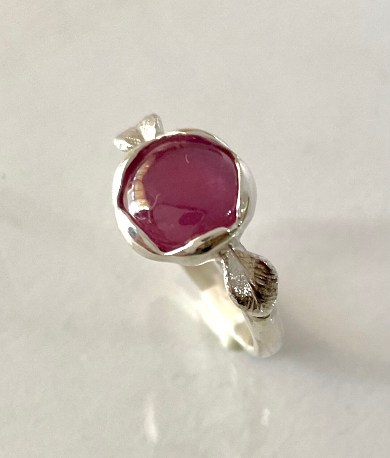 ワインカラーのルビーを使ったシルバーリングです。